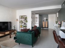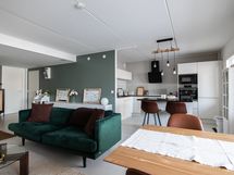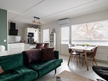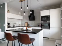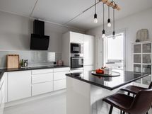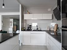 - Keittiön varusteet: Jääkaappipakastin, erillisuuni, liesi, liesituuletin, mikroaaltouuni, astianpesukone ja keittiösaareke. Liesi: Induktioliesi. Työtason materiaali: Kivi ja laminaatti. Remontoitu 2019.