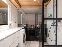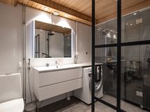 - Pesutilojen varusteet: WC-istuin, suihku, suihkuseinä, pesukoneliitäntä, lattialämmitys, peili, pesuallas, allaskaappi ja bidee-suihku. Pesutilojen kuvaus: Remontoitu 2019.