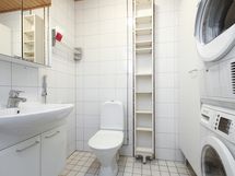 - Varusteet: suihku, suihkuseinä, peilikaappi, allaskaappi, pesukoneliitäntä, WC, lattialämmitys, pesukone, kuivausrumpu. Kylpyhuone/wc. WC: Toinen kylpyhuoneen yhteydessä sekä erillinen wc varusteineen ja pesutorneineen. Varusteet: lattiaan asennettu WC, bidee, lattialämmitys