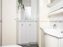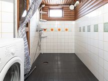 Sauna, sähkökiuas, kylpyhuone, erillinen wc, suihku, peilikaappi, kaapit, allaskaappi, pesukoneliitäntä, lattialämmitys, kiinteät valaisimet.