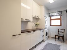 - Häkkivarasto, kaapistot ja vaatehuone. Lisätietoja säilytystiloista: Poikkeuksellisen tilava häkkivarasto.