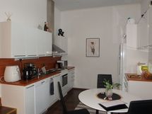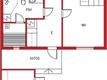 Keittiön varusteet: Jääkaappipakastin, liesi, liesituuletin ja astianpesukone. Liesi: Valurautaliesi.