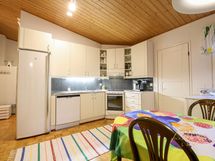 - Keittiön varusteet: Erillinen pakastin, jää-viileäkaappi, uuni, liesi, liesituuletin ja astianpesukone. Liesi: Keraaminen liesi. Työtason materiaali: Laminaatti.