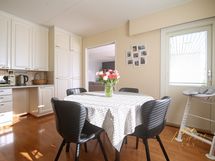- Keittiön varusteet: Jääkaappipakastin, liesi, astianpesukone ja liesituuletin