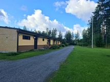 Rivitalokolmio omalla saunalla ja lämmitystolpallisella autopaikalla.