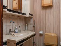 Pesuhuone: suihku, vesikiertoinen lattialämmitys, pesukoneliitäntä. Wc: peilikaappi, allaskaapisto, wc-istuin. Sähkösauna.
