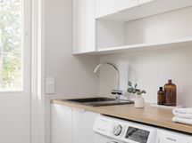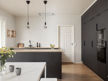 - Liesi: induktio, erillisuuni. Työtasot: laminaatti. Kylmäsäilytys: jääkaappi/pakastin. Varustus: mikroaaltouuni, astianpesukone, kiinteät valaisimet, liesituuletin / hormi.