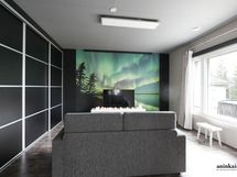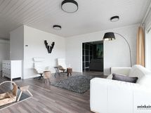- Keittiö: laatta Makuuhuone: laminaatti Kylpyhuone: laatta Olohuone: laminaatti