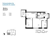 Kompakti kolmio toimivalla pohjaratkaisulla. Makuuhuoneet ovat olohuoneen eri puolilla, jolloin tämä asunto sopii moneen eri elämänvaiheeseen. Erilliseen keittiöön mahtuu ruokapöytä hyvin. Oman saunan lämmöstä pääset nauttimaan silloin kun tahdot, ja saunasta pääset vilvoittelemaan lasitetulle parvekkeelle.