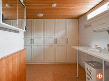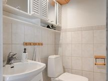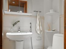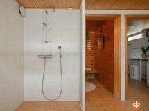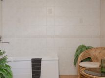 - Sauna, sähkökiuas, kylpyhuone, erillinen wc (2x), suihku (2x), suihkuseinä, amme, peilikaappi, allaskaappi (uudella puolella), pesukoneliitäntä, lattialämmitys (märkätiloissa).