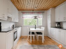 - Jääkaappi (uudella puolella), jääkaappipakastin (vanhalla puolella), erillisuuni (molemmissa keittiöissä), sähköliesi (vanhalla puolella), induktioliesi (uudella ppuolella), liesituuletin, astianpesukone (uudella puolella), kaapistot. Arkkupakastin (uudella puolella). Liesituuletin uusittu uudella puolella 2024, vanhalla puolella 2018