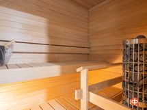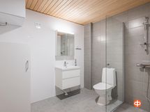 Sauna, sähkökiuas, erillinen wc, suihku, peilikaappi, allaskaappi, pesukoneliitäntä, lattialämmitys.
