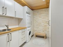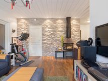 - Kiuas: Heti valmis -sähkökiuas. Haapalauteet, leppäpanelit seinissä.