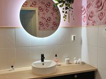 - Varusteet: WC, Kaksi suihkua, Suihkuseinä, Lattialämmitys. WC: wc:ssä wc-istuin , bidee