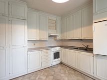 Liesi: sähköliesi. Työtasot: laminaatti. Kylmäsäilytys: jääkaappi. Varustus: liesituuletin.