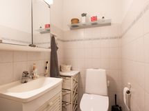 - Pesutilojen varusteet: Suihku (2kpl) ja lattialämmitys. Erillisen WC:n varusteet: WC-istuin, peilikaappi, pesuallas, allaskaappi ja bidee-suihku. Erillisen WC:n kuvaus: Yksi erillinen wc, toinen wc kodinhoitohuoneen yhteydessä.