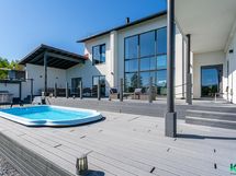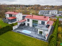 - 3 mh, työhuone/kirjasto, oh, k, rt, pkh, kph, s, khh, vh, var/kuntohuone, 2 ak, at, 2 WC, 2 kph/WC