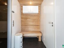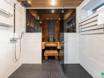- Pyyhekuivaimet kaikissa kylpyhuoneissa (sähköllä), vastakkaislauteet, sähkösauna, poreallasvaraus pääkylpyhuoneessa, sadesuihkut, kosketusvapaat hanat WC:issä, kuivauskaappi kodinhoitohuoneessa,