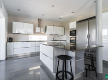 - Italialaiset Gatto-keittiökalusteet, laadukkaat kivitasot, Festivo kylmiö/pakastin, Siemens kodinkoneet (erillisuuni, induktiotaso, mikroaaltouuni, integroitu astianpesukone), design liesituuletin hormiin