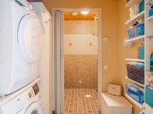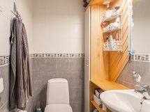 - Pesutilojen varusteet: Suihku ja lattialämmitys. Pesutilojen kuvaus: Vaalea laatoitettu pesuhuone. Erillisten WC:n lukumäärä: 1. Erillisen WC:n varusteet: WC-istuin, lattialämmitys, peilikaappi, pesuallas, allaskaappi ja bidee-suihku. Erillisen WC:n kuvaus: Vaaleansävyinen WC.