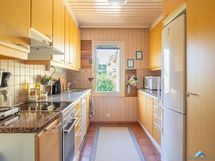 - Keittiön varusteet: Jääkaappipakastin ja liesi. Liesi: Induktioliesi. Työtason materiaali: Kivi. Laadukkaassa keittiössä on sileät koivuovet ja kivitasot. Lattiassa laatoitus.