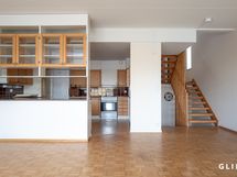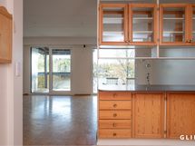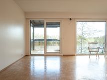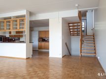 Asunnon tilat jakautuvat kolmeen kerrokseen. Sisääntulokerroksessa makuuhuone ja erillinen wc, sekä toinen makuuhuone/työtila. Keskikerroksessa sijaitsee reilun kokoinen avokeittio ja olohuone, jonka suurista ikkunoista avautuu upea näkymä järvelle päin. Asunnon suuret ikkunat tuovatkin tilaan runsaasti luonnonvaloa ja luovat avaran tunnelman. Alakerrasta löytyy asunnon kylpytilat, sekä sauna ja lisäksi takkahuone, josta on kulku omalle terassille. Asunto vaatii remonttia pintojen osalta, ja näin ollen tässä on loistava mahdollisuus toteuttaa juuri sellainen koti kuin olet aina halunnut!