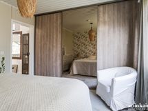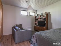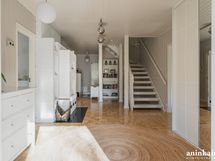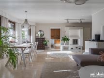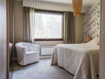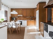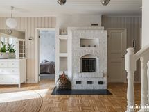 - kolmessa makuuhuoneessa kaapistot, vaatehuone, autotallin yhteydessä varasto ja puuvarasto, alakerrassa toimiva kylmiö lisäsäilytykseen