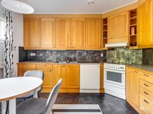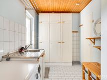 Varustus: liesituuletin, uuni, allas, astianpesukone, jääkaappi, pakastin, sähköliesi.
