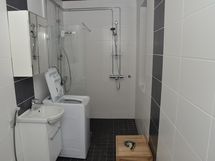 - Pesukone, Peilikaappi, Allaskaappi, Laattalattia, Laattaseinä, Useita suihkuja, Suihkuseinä, Avattava ikkuna, katto paneloitu, putket uusittu samoin vesimittarit. patteri uusittu.