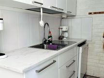 - Keittiön kaapistot uusittu v. 2019. Varusteena sähköliesi, liesituuletin, astianpesukone, jääkaappi ja pakastin.