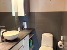 Kylpyhuone, suihku, erillinen wc, peilikaappi, pesukoneliitäntä, lattialämmitys, puusauna