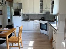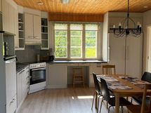 Kaapistot, jääkaappi/pakastin, sähköliesi, liesituuletin hormiin, liesikupu, astianpesukoneliitäntä, astianpesukone