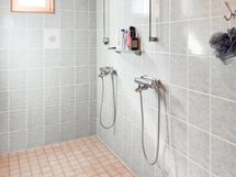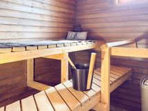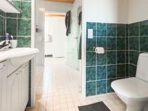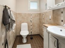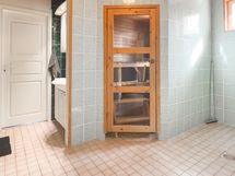 Sauna, sähkökiuas, kylpyhuone, erillinen wc, suihku, peilikaappi, kaapit, allaskaappi, pesukoneliitäntä, lattialämmitys, kiinteät valaisimet.