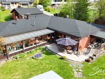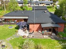 - Asunnossa on terassi. Lasitettu terassi. Terassia on lähemmäksi 100m2, josta noin 25m2 on katettua ja lasitettua. Terassi on niin tilava, että siihen on tehty ulkoilmaolohuone telkkareineen ja sohvineen. Terassi jatkuu avoterassina molempien talon päätyjen yli. Lisäksi saunarakennuksen yhteydessä on terassi. Katettu terassi on Etelän / Lännen suuntainen, joten todella valoisa! Kyllä viihtyy!