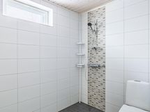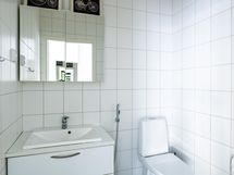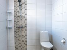 Kylpyhuone: suihku, wc, peilikaappi, allaskaappi, lattialämmitys, kiinteät valaisimet.