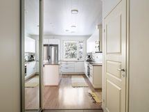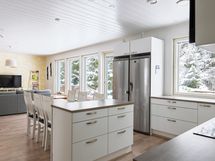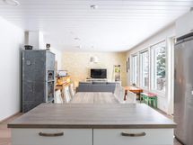 Koti on suunniteltu arjen toimivuutta ajatellen. Keittiö ja olohuone muodostavat avaran, valoisan kokonaisuuden, jossa perhe voi viettää aikaa yhdessä. Keittiön modernit kodinkoneet sekä käytännölliset säilytysratkaisut tekevät ruoanlaitosta sujuvaa.