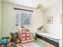 Raikas ja harmoninen värimaailma jatkuu läpi koko kodin. Kaikki makuuhuoneet ovat tilavia, ja päämakuuhuoneesta löytyy oma käytännöllinen vaatehuone. Arkea helpottaa kodinhoitohuone, jonne mahtuvat sekä pesukone että kuivausrumpu. Kodinhoitohuoneesta on kulku kylpyhuoneeseen, saunaan sekä suoraan takapihalle.