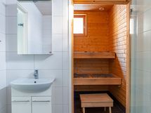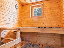 Sauna: sähkökiuas, kiinteät valaisimet.