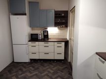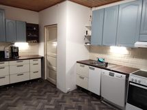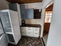 Kaapistot vaihdettu, muovimatto asennettu lattiaan sekä seinät maalattu. Liesi sekä jääkaappi uusittu.