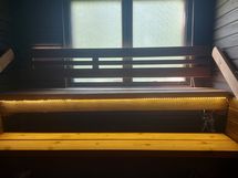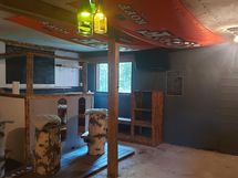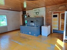 Kuvaus: Ulkosauna navettarakennuksessa sekä pukuhuone ja oleskelutilat. puukiuas