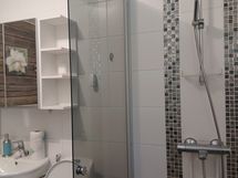 Pesutilojen kuvaus: Uusi laajennusosa, jossa kph / wc. Varustus: suihkuseinä, lattialämmitys, wc-istuin, suihku.