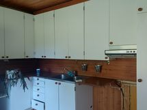Työtasot: laminaatti. Kylmäsäilytys: jääkaappi.