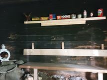 Tupa, jossa kolmella sivulla ikkunat. Tuvassa varaava hella-uuni. Tuvan alla noin 4m2 kellari. Hirsiseinät.