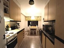- Liesi: muu. Työtasot: laminaatti. Kylmäsäilytys: jääkaappi/pakastin. Varustus: liesituuletin. Tilava keittiö, kaapistot alkuperäiset.