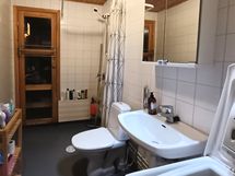 - Pesutilojen kuvaus: Bidee-suihku. Varustus: pesukoneliitäntä, wc-istuin, suihku, peilikaappi.
