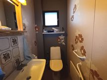 Pesutilojen kuvaus: Kodinhoito tilat samassa yhteydessä, maalattu betonilattia, pesukoneliitäntä. Käynti ulos. Ikkunallinen. Varustus: pesukoneliitäntä, lattialämmitys, peili. Erillisen WC:n kuvaus: Ikkunallinen. Hylly, tukikahvat.