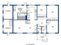 Tupa-keittiö + 3 h + kph/s/wc + varastot