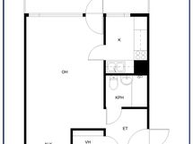 Tämän valoisan yksiön pohjaratkaisu on hyvä.