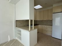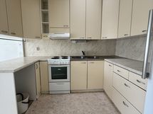 - Keittiön varusteet: Jääkaappi, uuni, liesi, liesituuletin ja astianpesukoneliitäntä. Liesi: Sähköhella. Työtason materiaali: Laminaatti.