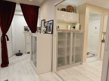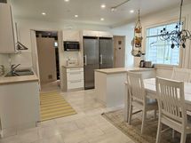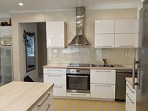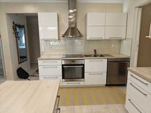 - Liesi: induktio, erillisuuni. Työtasot: laminaatti. Kylmäsäilytys: jääkaappi, pakastin. Varustus: liesikupu, liesituuletin, astianpesukone. Oma lämmönsäätö.